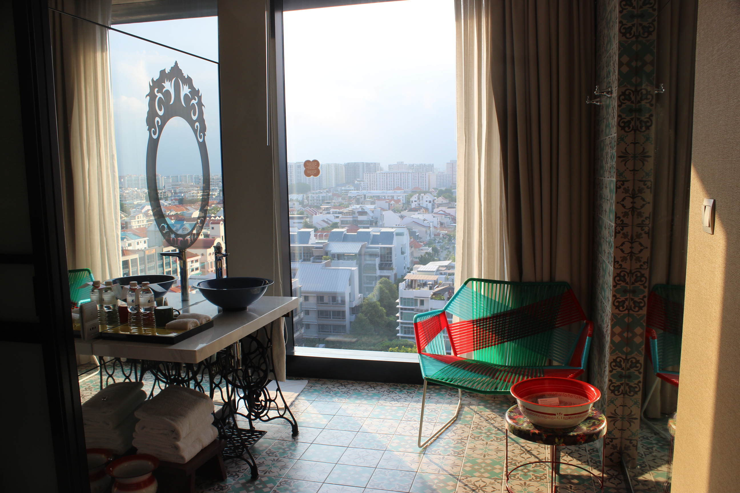 Bathroom (shower behind the mirror). Love the tiles.